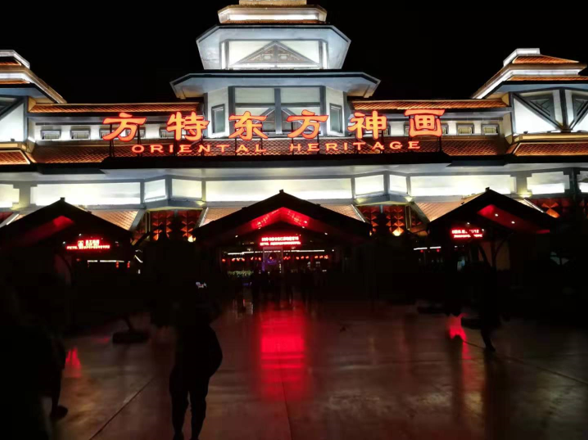 因為有一天的時間,我們準(zhǔn)備把各種節(jié)目都看我。我們首先看的是《天河之戀》,做在可以升降平臺的上面,仿佛置身與其中,遙望牛郎和侄女鵲橋相會,觀看效果很好。